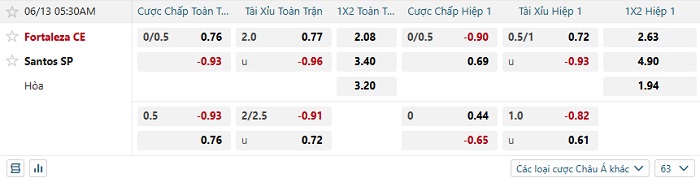 Tip kèo Châu Á full trận Fortaleza vs Santos