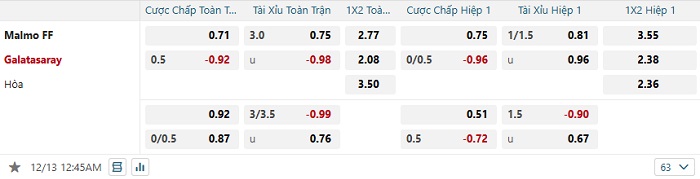 Tip kèo Châu Á full trận Malmo vs Galatasaray