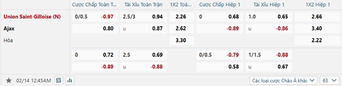 Tip kèo Châu Á full trận Saint Gilloise vs Ajax