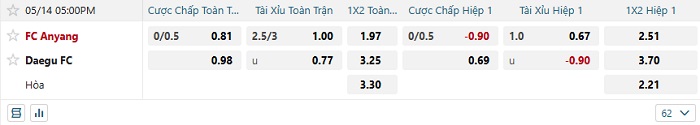 Tip kèo Châu Á hiệp 1 Anyang vs Daegu