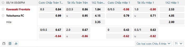 Tip kèo Châu Á hiệp 1 Kawasaki Frontale vs Yokohama