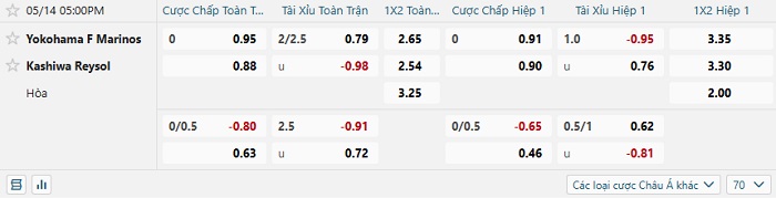 Tip kèo Châu Á full trận Yokohama vs Kashiwa Reysol
