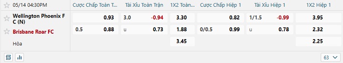 Tip kèo Châu Á hiệp 1 Wellington Phoenix vs Brisbane Roar