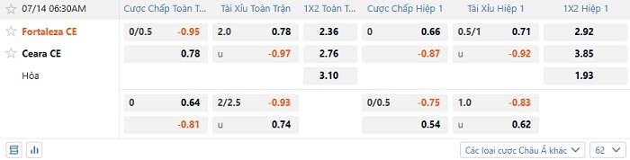 Tip kèo Châu Á full trận Fortaleza vs Ceara