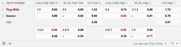 Tip kèo Châu Á hiệp 1 Thụy Điển vs Kosovo