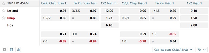 Tip kèo Châu Á full trận Iceland vs Pháp
