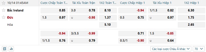 Tip kèo Châu Á full trận Bắc Ireland vs Đức
