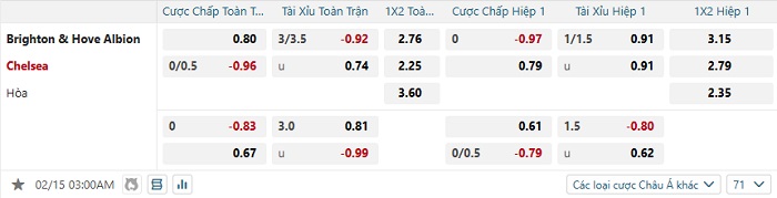 Tip kèo Châu Á hiệp 1 Brighton vs Chelsea
