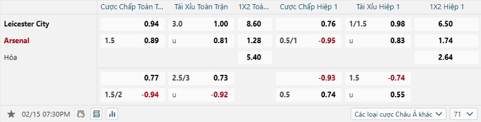 Tip kèo Châu Á hiệp 1 Leicester vs Arsenal
