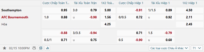 Tip kèo Châu Á full trận Southampton vs Bournemouth