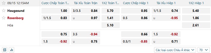 Tip kèo Châu Á hiệp 1 Haugesund vs Rosenborg