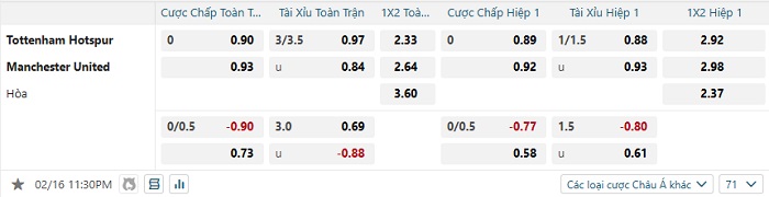 Tip kèo Châu Á full trận Tottenham vs Man United