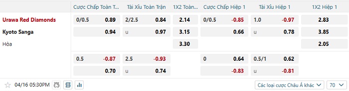 Tip kèo Châu Á hiệp 1 Urawa Red vs Kyoto Sanga