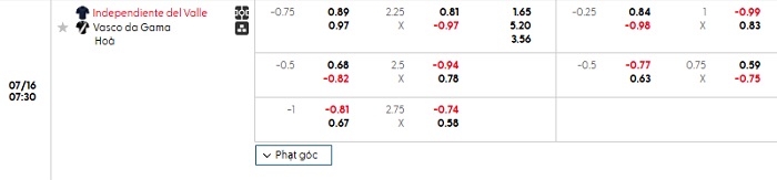 Tip kèo Châu Á full trận Independiente del Valle vs Vasco da Gama