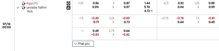 Tip kèo Châu Á hiệp 1 Rigas FS vs Levadia Tallinn