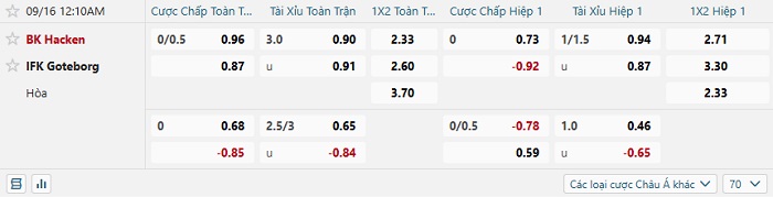 Tip kèo Châu Á hiệp 1 Hacken vs Goteborg