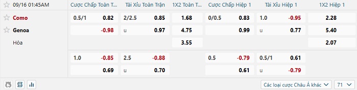 Tip kèo Châu Á hiệp 1 Como vs Genoa
