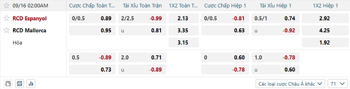 Tip kèo Châu Á full trận Espanyol vs Mallorca