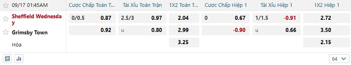Tip kèo Châu Á hiệp 1 Sheffield Wednesday vs Grimsby