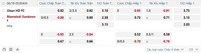 Tip kèo Châu Á hiệp 1 Ulsan Hyundai vs Mamelodi