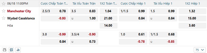 - Dự đoán tỷ số hiệp 1: Man City 2 – 0 Wydad Casablanca
