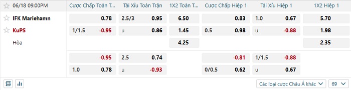 Tip kèo Châu Á full trận Mariehamn vs KuPS