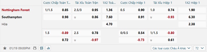 Tip kèo Châu Á full trận Nottingham vs Southampton