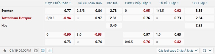 Tip kèo Châu Á hiệp 1 Everton vs Tottenham