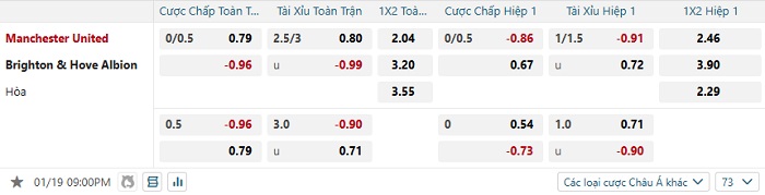 Tip kèo Châu Á hiệp 1 Man United vs Brighton