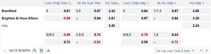 Tip kèo tỷ số Brentford vs Brighton