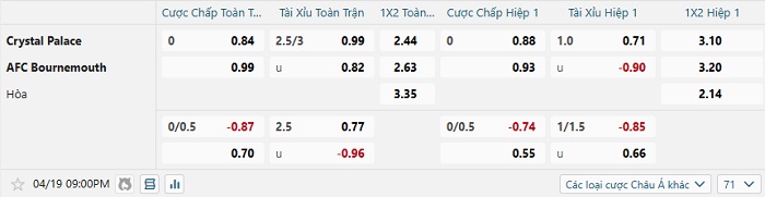 Tip kèo Châu Á full trận Crystal Palace vs Bournemouth