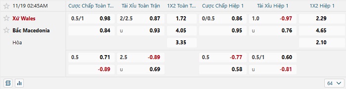 Tip kèo Châu Á hiệp 1 Wales vs Bắc Macedonia