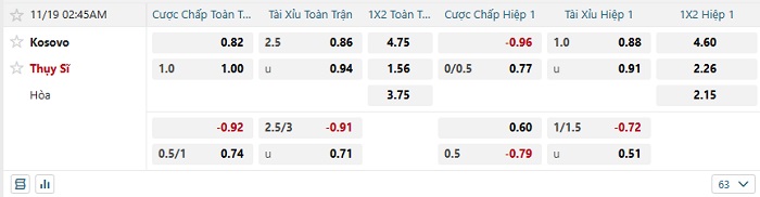 Tip kèo Châu Á hiệp 1 Kosovo vs Thụy Sĩ
