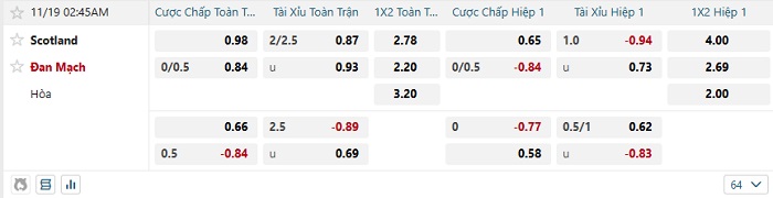 Tip kèo Châu Á full trận Scotland vs Đan Mạch