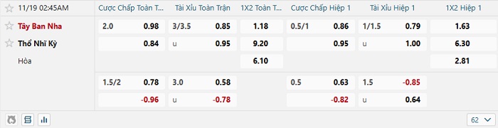 Tip kèo Châu Á hiệp 1 Tây Ban Nha vs Thổ Nhĩ Kỳ