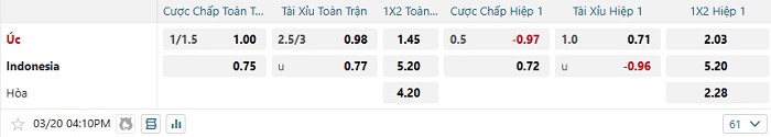 Tip kèo Châu Á hiệp 1 Úc vs Indonesia