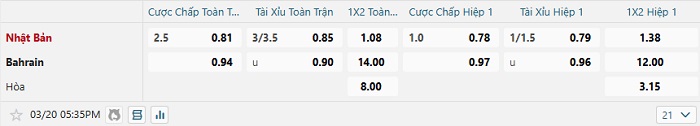 Tip kèo Châu Á hiệp 1 Nhật Bản vs Bahrain