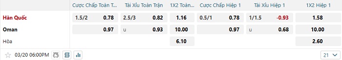 Tip kèo Châu Á hiệp 1 Hàn Quốc vs Oman