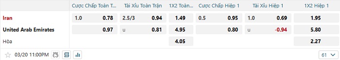 Tip kèo Châu Á hiệp 1 Iran vs UAE