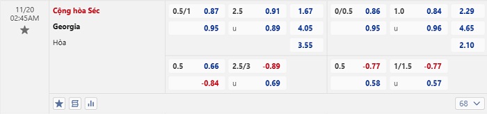 Tip kèo Châu Á full trận CH Séc vs Georgia