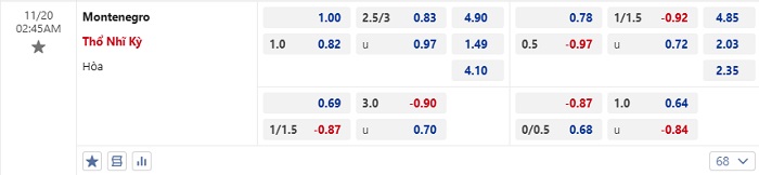 Tip kèo Châu Á full trận Montenegro vs Thổ Nhĩ Kỳ