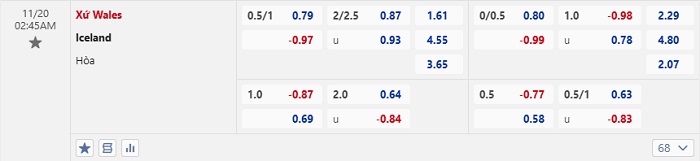 Tip kèo Châu Á hiệp 1 Wales vs Iceland