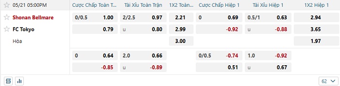 - Dự đoán tỷ số hiệp 1: Shonan Bellmare 1 – 0 FC Tokyo