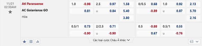 Tip kèo Châu Á full trận Paranaense vs Goianiense