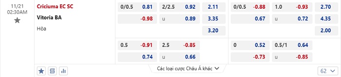 Tip kèo Châu Á full trận Criciuma vs Vitoria