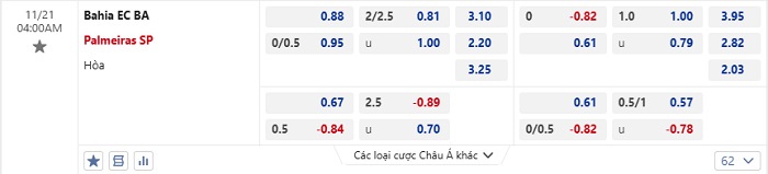 Tip kèo Châu Á full trận Bahia vs Palmeiras