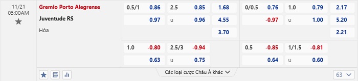 Tip kèo Châu Á hiệp 1 Gremio vs Juventude