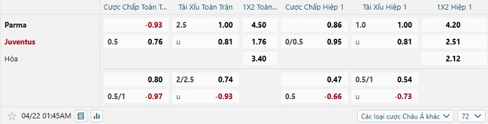 Tip kèo Châu Á full trận Parma vs Juventus