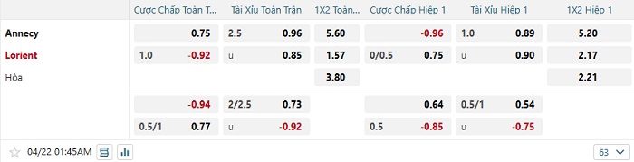 Tip kèo Châu Á full trận Annecy vs Lorient