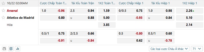 Tip kèo Châu Á full trận Arsenal vs Atletico Madrid